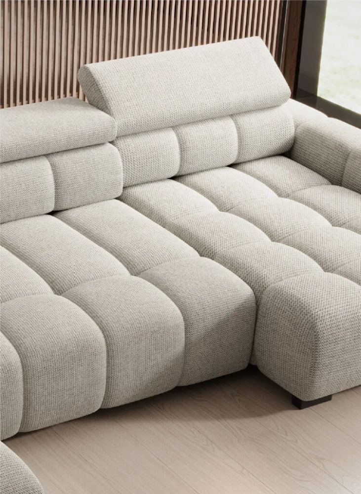 Elegancka bryła z wyraźnymi przeszyciami oraz niskimi, czarnymi nóżkami z tworzywa sztucznego nadaje meblowi lekkości i charakteru. BOREAL 3 można zamówić w wersji lewo- lub prawostronnej, co pozwala idealnie dopasować go do układu pomieszczenia.