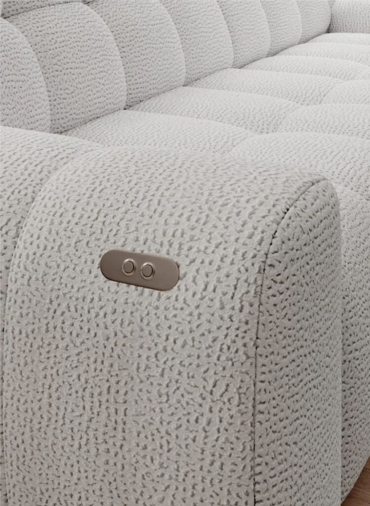 Największym atutem BOSSA 3 jest elektrycznie wysuwane siedzisko, które pozwala zwiększyć jego głębokość z 66 do 92 cm. Wystarczy nacisnąć dyskretny przycisk w podłokietniku, aby dostosować pozycję do własnych preferencji — od krótkiej chwili wytchnienia po dłuższy odpoczynek z książką lub filmem.