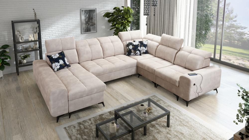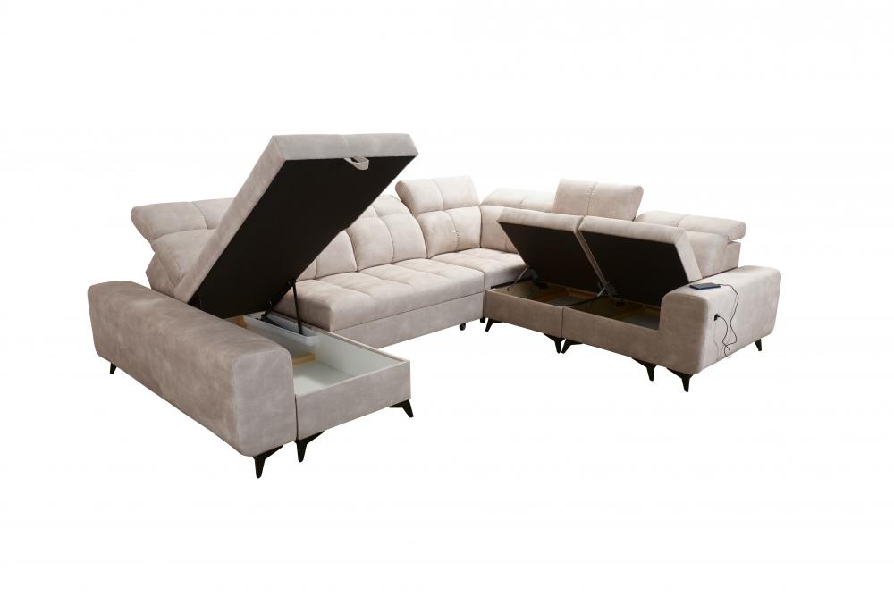 Narożnik U kształtny z funkcją spania z ładowarką USB SILVER 8