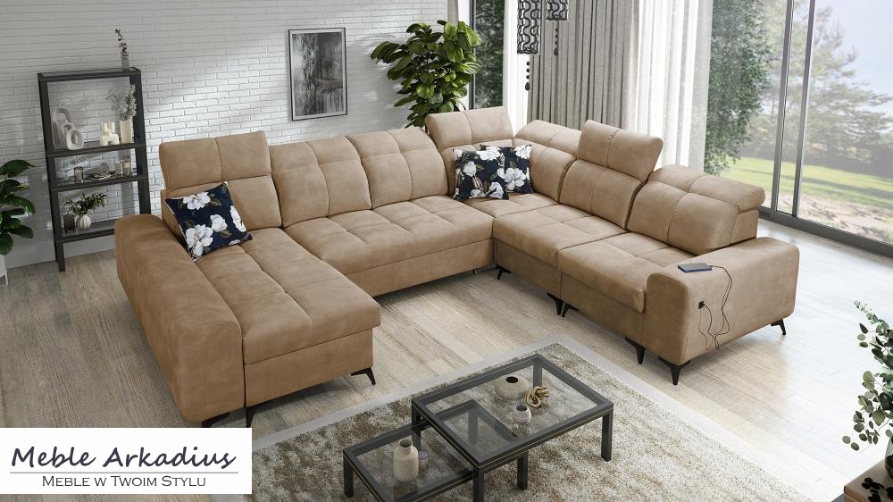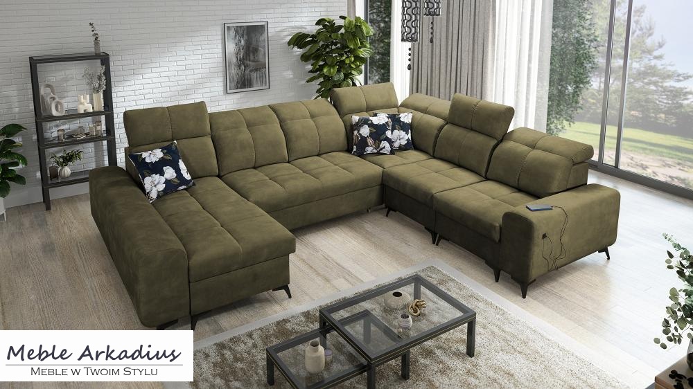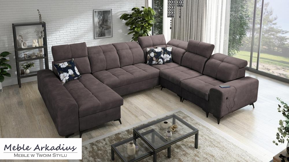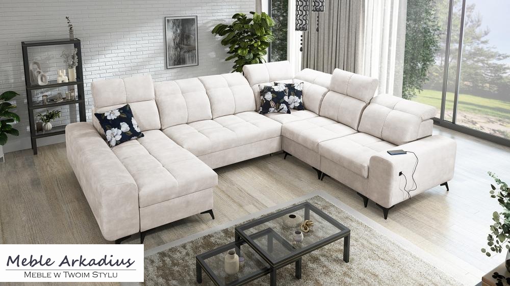Zapytaj o produktZjawiskowy narożnik U kształtny z funkcją spania z ładowarką USB SILVER 8 – luksus i funkcjonalność