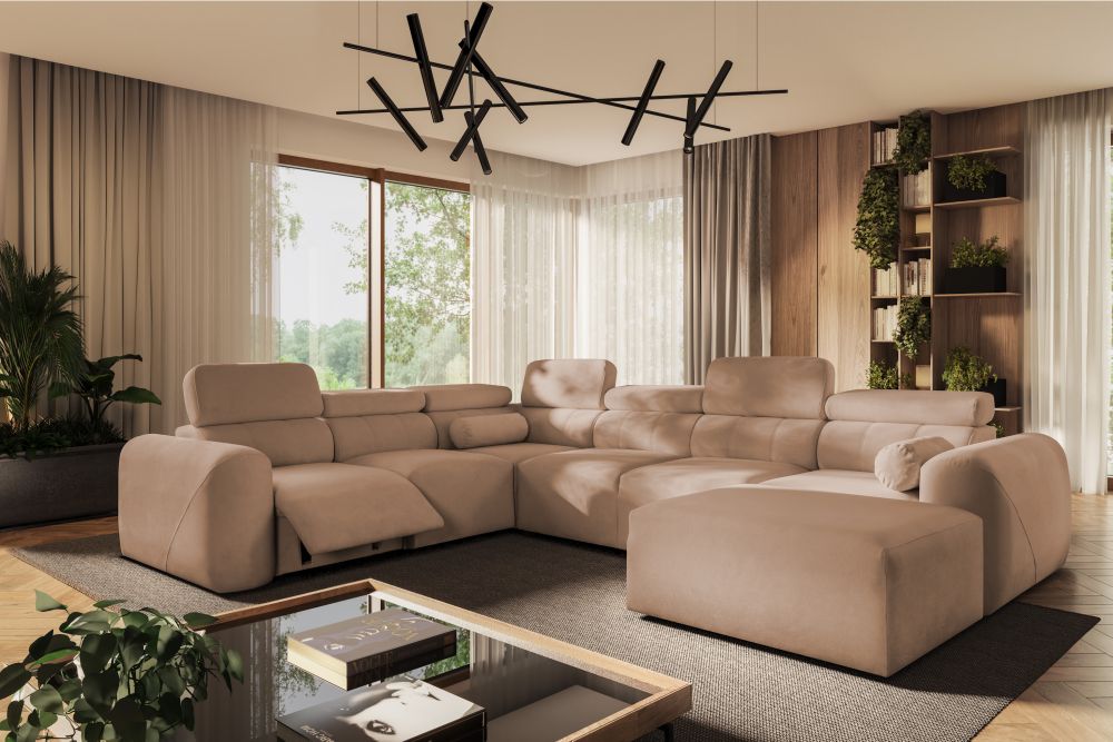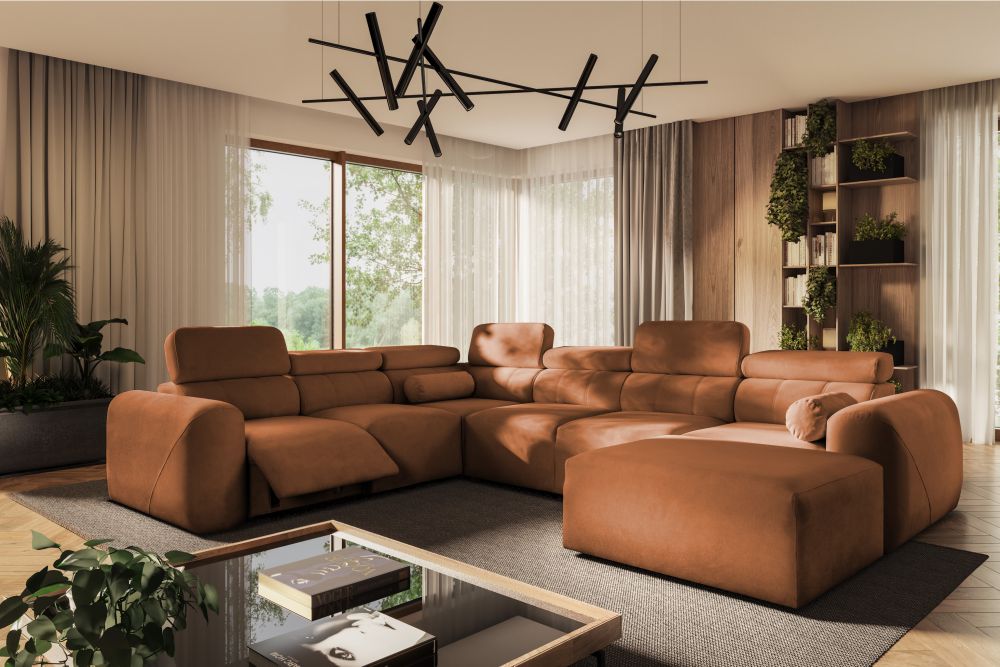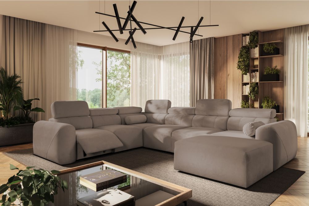 Narożnik U siedmioosobowy z elektrycznym podnóżkiem z funkcją spania AMADEUSZ 8 MIX