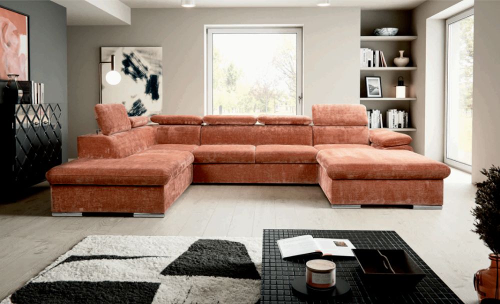 Nowoczesny, narożnik U z funkcją spania z ruchomymi zagłówkami FURLA