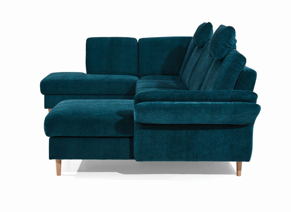 Wyjątkową zaletą tego modelu jest funkcja spania codziennego z powierzchnią 265 x 120 cm – wystarczająco dużą, by zastąpić tradycyjne łóżko. System rozkładania „delfin” działa płynnie i intuicyjnie, a wygodna, średnio miękka pianka w połączeniu z wypełnieniem sprężynami bonell gwarantuje optymalne podparcie ciała. Dopełnieniem są dwa mobilne zagłówki, które pozwalają dostosować pozycję do indywidualnych potrzeb.