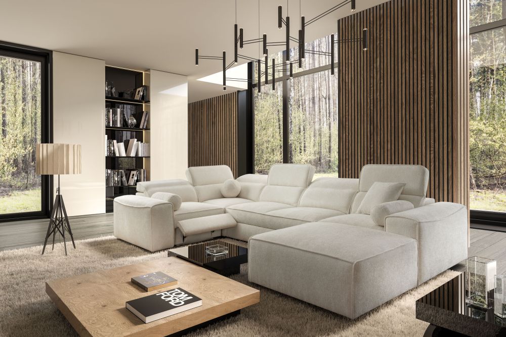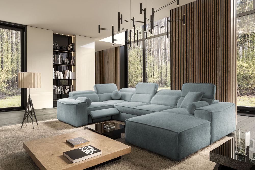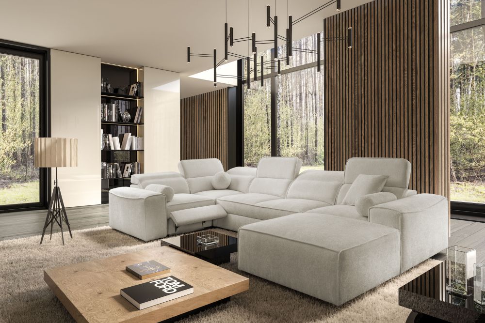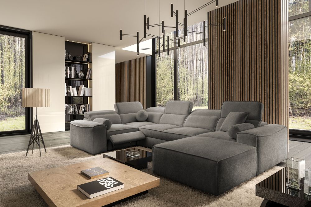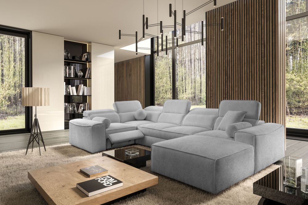 Zapytaj o produktOlbrzymi narożnik U z podnóżkiem elektrycznym z funkcją spania CHARLES 4