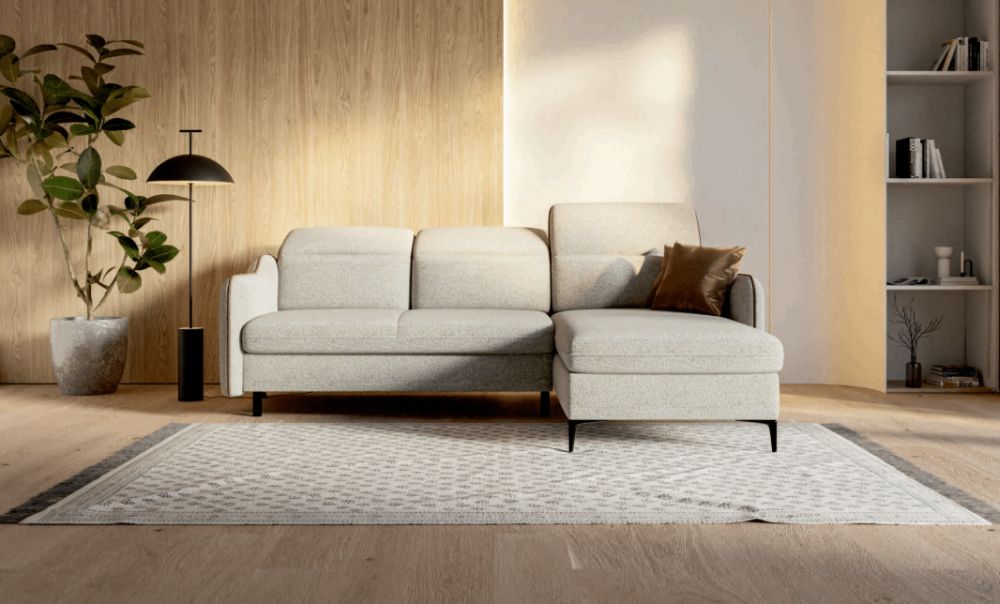 BAGO to nie tylko wygoda, ale także solidne wykonanie. Stelaż z drewna i płyty wiórowej gwarantuje trwałość, a połączenie sprężyny falistej i wysokiej jakości pianki PUR zapewnia miękkość i odpowiednie podparcie dla kręgosłupa. Dodatkowy pojemnik na pościel to praktyczny element, który pomaga w utrzymaniu porządku. W standardzie dostępne są tkaniny premium, co pozwala dopasować narożnik do indywidualnych upodobań i stylu wnętrza.