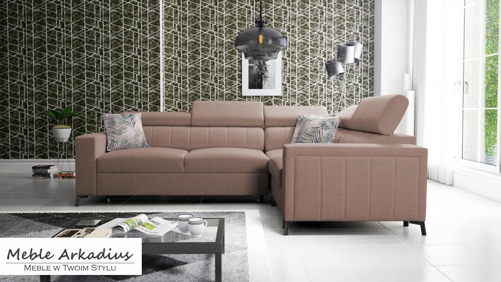 Narożnik z funkcją spania z pięknymi przeszyciami BASTER 2 – komfort i elegancja w jednym