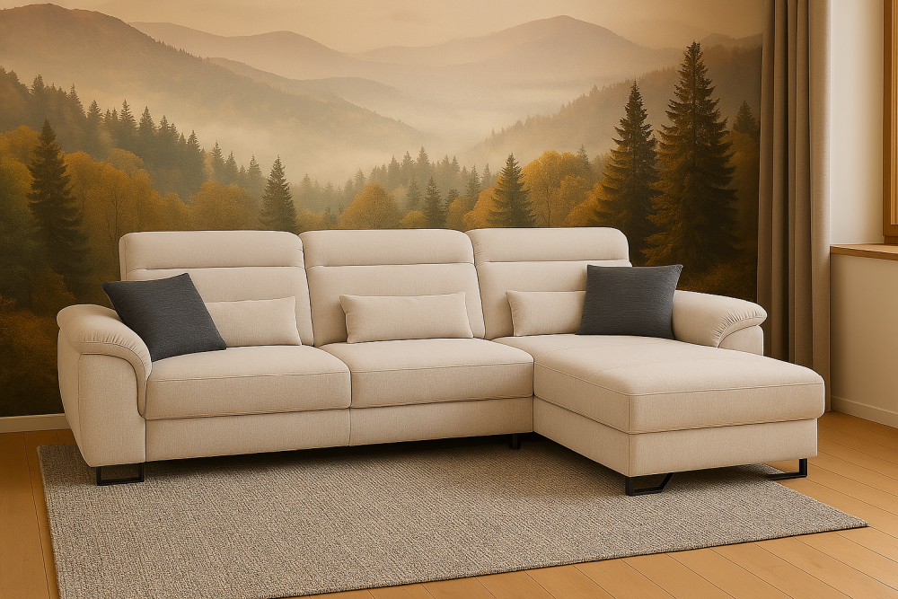 Meble Arkadius zadbały również o detale – do wyboru są srebrne lub czarne nogi, a ogromny wybór tkanin pozwala dopasować narożnik do każdego wnętrza, od nowoczesnych loftów po przytulne, skandynawskie aranżacje. Możliwość wyboru wersji lewej lub prawej sprawia, że idealnie wpasuje się w układ Twojego pomieszczenia.