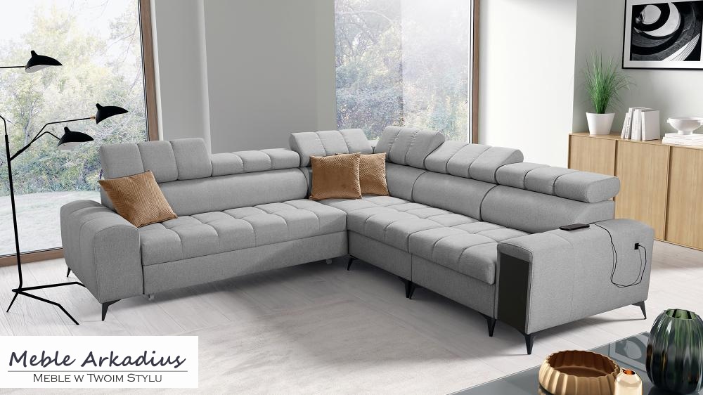 Narożnik podkowa z funkcją spania z barkiem z USB GUSTAV 4 MINI
