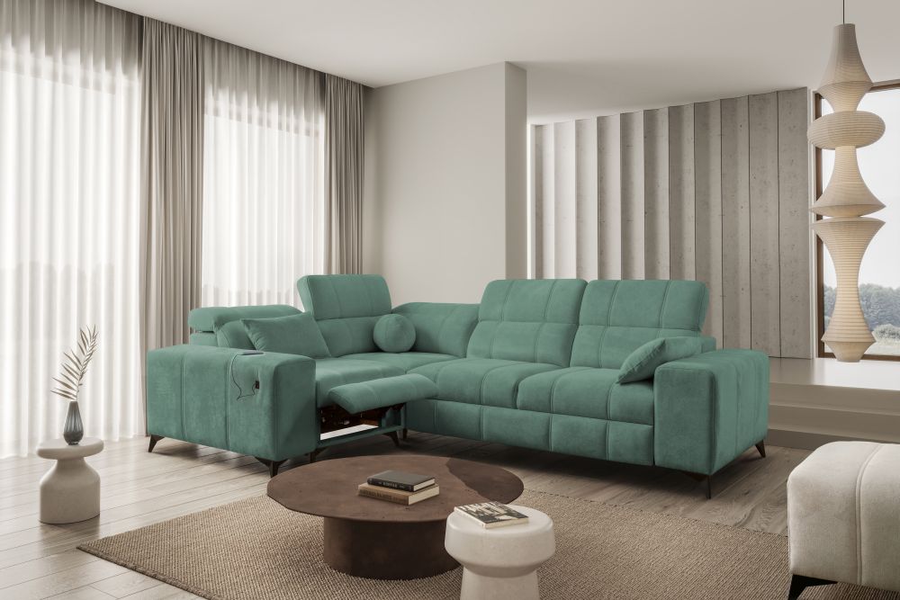 Ekskluzywny narożnik z funkcją spania z gniazdem USB i z funkcją relaks DOLCE 2 MIX