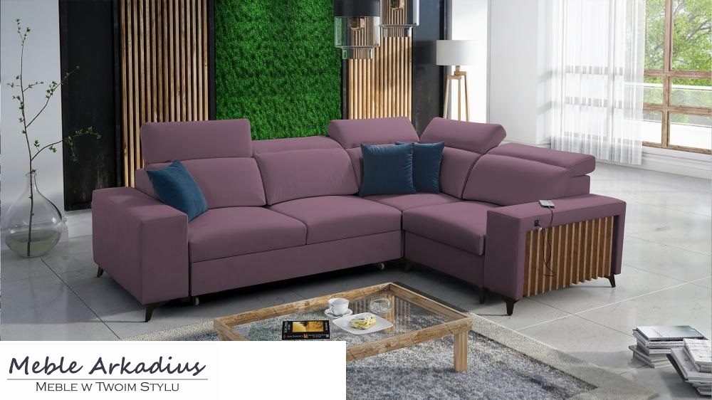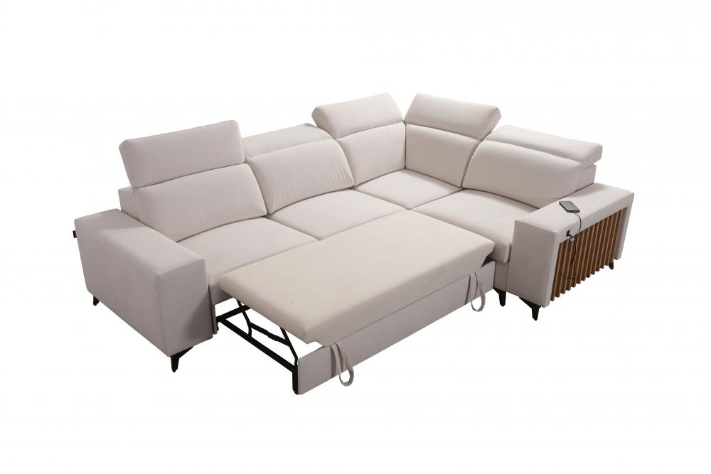Dwustronny, duży narożnik z funkcją spania z lamelami i z gniazdem USB LEMEL 2
