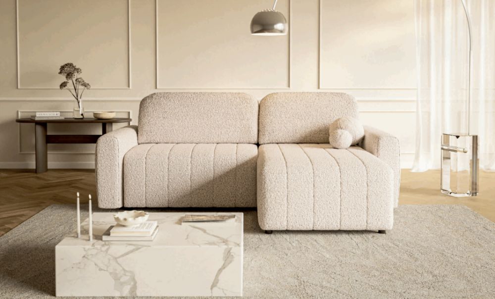 Narożniki z funkcją spania codziennego, takie jak LUTON, są idealnym wyborem do mniejszych mieszkań, gdzie przestrzeń musi być wykorzystana maksymalnie efektywnie. W dzień pełnią funkcję stylowej sofy, a wieczorem w kilka chwil zmieniają się w wygodne łóżko o powierzchni 218 x 130 cm. System rozkładania DL sprawia, że proces ten jest szybki i intuicyjny, a dodatkowy pojemnik na pościel pomaga utrzymać porządek i oszczędzić miejsce w szafach.