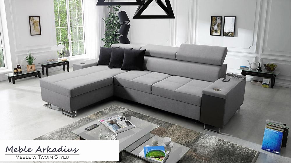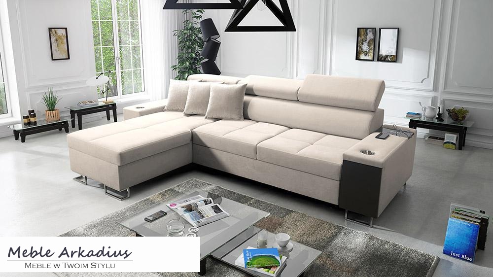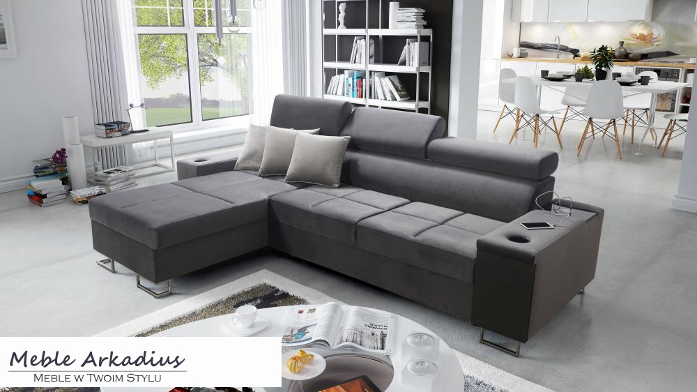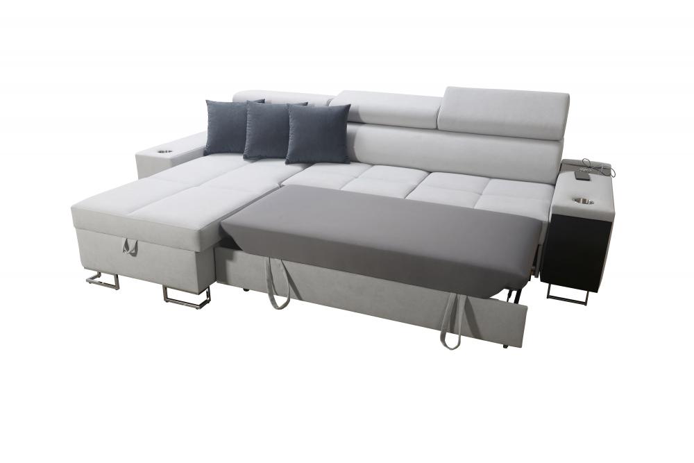 Narożnik z funkcją spania z gniazdkiem i barkiem MELLOW 2
