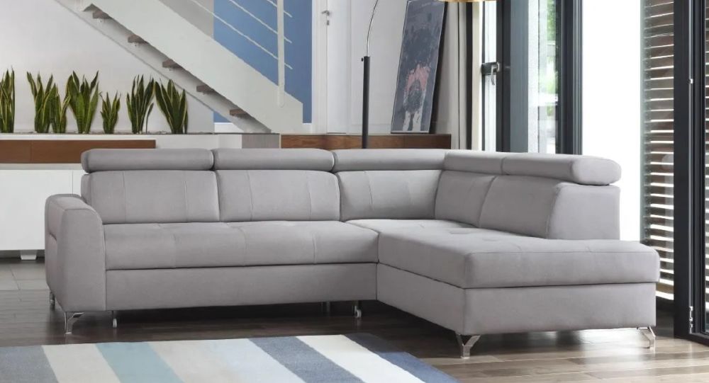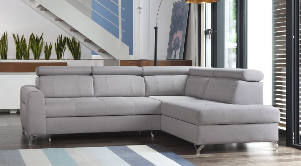 Decydując się na luksusowe narożniki salonoweu, warto zwrócić uwagę na szary narożnik z regulowanymi zagłówkami – szeroka regulacja dla każdego z miejsc siedzących, narożnik z wysokim oparciem to niewątpliwie wyższy komfort dla każdego z domowników. MONA to narożnik szary duży, to narożnik z ruchomymi zagłówkami – narożnik z oparciem z obu stron. Narożnik dwustronny – wygodnie wyśpią się dwie osoby. Meble ARkadius – produkcja mebli tapicerowanych jak dawniej – konstrukcje z litego drewna, skrzynie na pościele wykonane z grubej płyty wiórowej – stosujemy tylko polskie komponenty. Narożniki salonowe na sprężynach, narożniki z pianką HR – najwyższa forma komfortu.