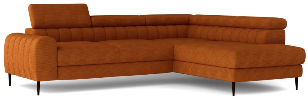 Czarne, metalowe nogi nadają mu lekkości i podkreślają nowoczesny, loftowy charakter, a regulowane zagłówki pozwalają dopasować wysokość oparcia do Twoich potrzeb – możesz usiąść prosto przy porannej kawie lub wygodnie się rozłożyć, by odpocząć po długim dniu.