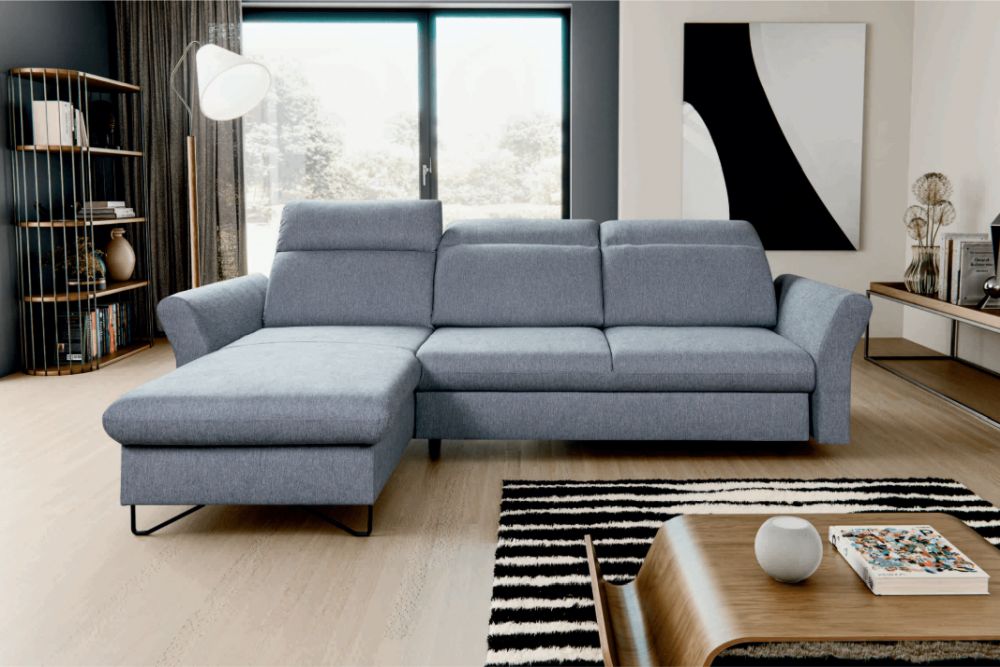 Ponadczasowy narożnik z funkcją spania z ruchomymi zagłówkami PAREO