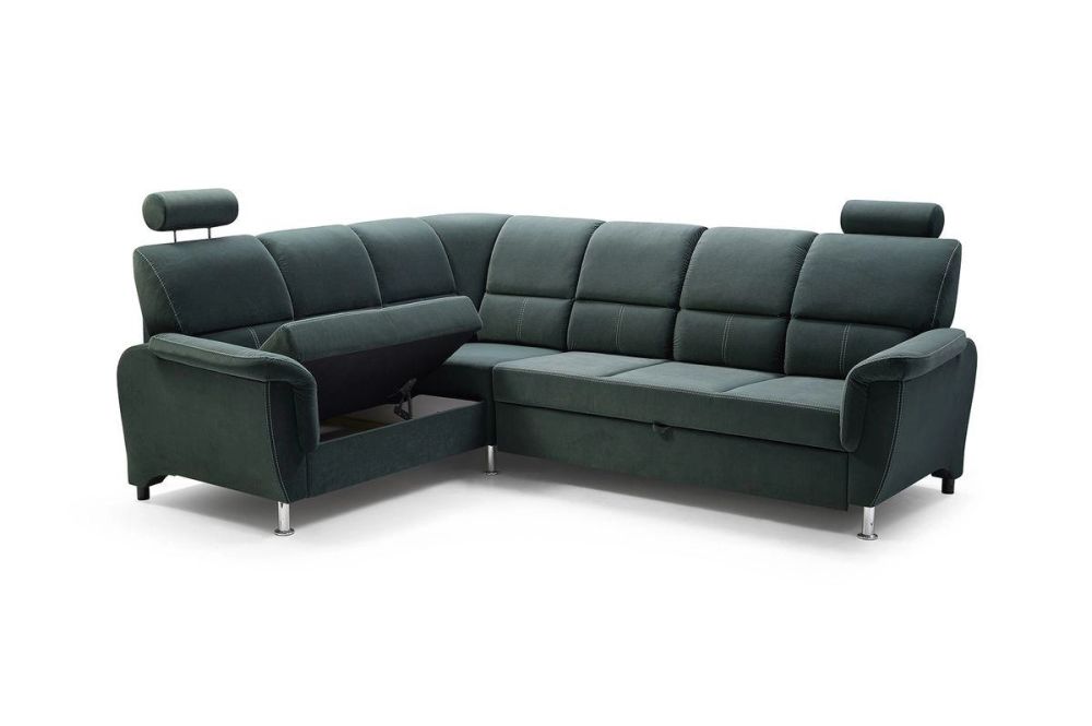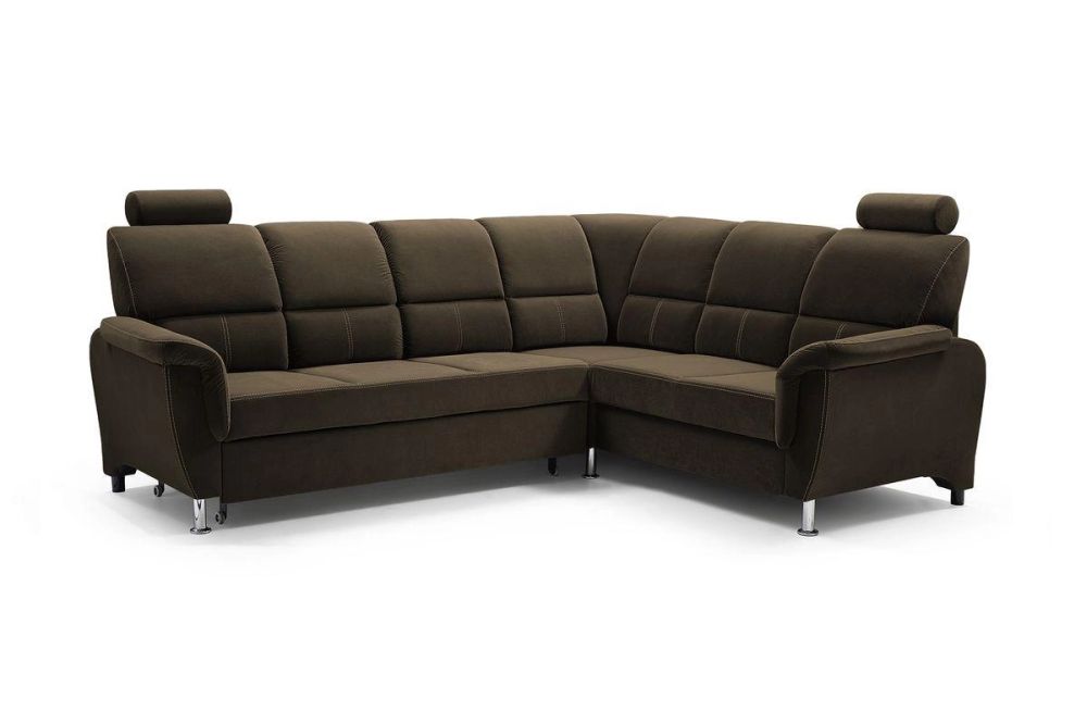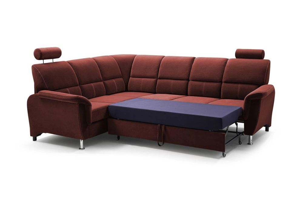 Dlaczego warto zdecydować się na narożnik na wysokich nóżkach z funkcją spania? Narożnik na metalowych nóżkach rozkładany to wyższa pozycja siedzenia, która ułatwia szczególnie starszym osobom siadanie i wstawanie z kanapy. Narożnik na wysokich nóżkach to również sprawdzone rozwiązanie do utrzymania czystości pod meblem. Pod nasze narożniki z łatwości wjedzie również robot sprzątający. Miodowy narożnik z funkcją spania z funkcją TV FERDYNAND to narożnik na sprężynach do zwiększenia komfortu siedzenia, narożnik do codziennego spania dla dwóch osób. Łatwe rozkładanie – narożnik system DELFIN, narożnik z pojemnikiem na pościele z otwieraniem na automacie.