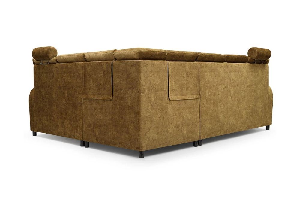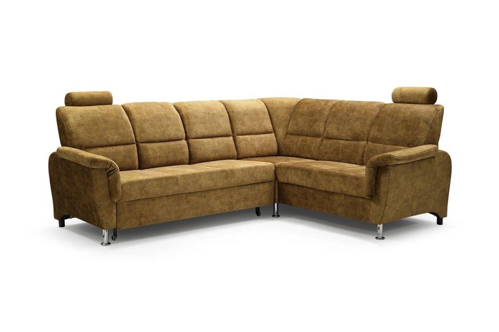 Narożnik FERDYNAND – miodowy narożnik z funkcją spania z funkcją TV. Miodowy narożnik w salonie to esencja pozytywnej energii i ciepła rodzinnego. Narożnik duży z regulowanymi zagłówkami i funkcją spania to bez cienia wątpliwości narożnik do dużego salonu. Nasz narożnik z w stylu klasycznym to znakomity wybór, jeśli urządzamy salon w stylu klasycznym. Narożnik klasyczny to mebel ponadczasowy, piękny i tworzący niepowtarzalny klimat w salonie. Prezentowany narożnik musztardowy z funkcją spania może być wykonany dla Państwa w każdej z dostępnych tkanin, przedstawionych pod zdjęciami narożnika.