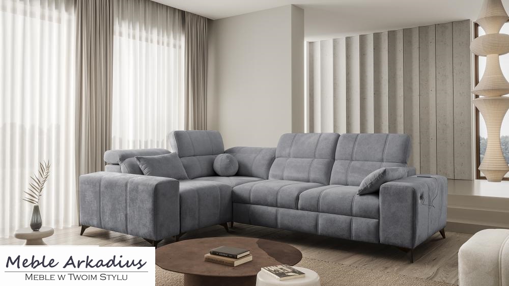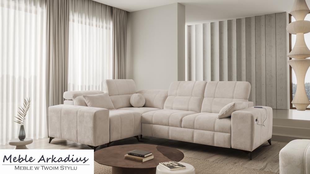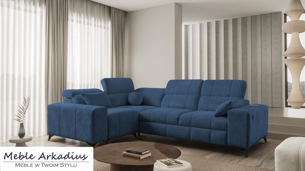 Zapytaj o produktPrzepiękny narożnik z funkcją spania z zagłówkami z gniazdem USB DOLCE 2