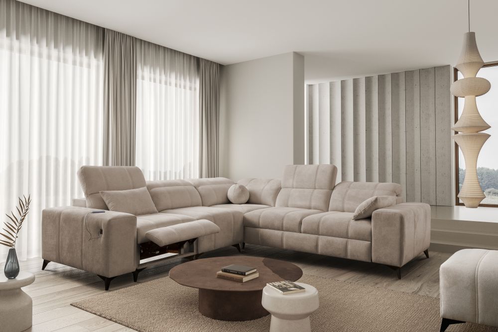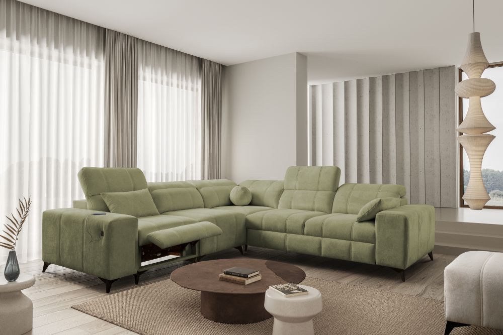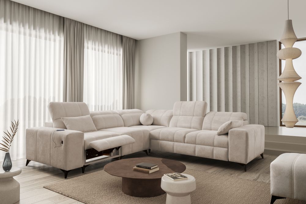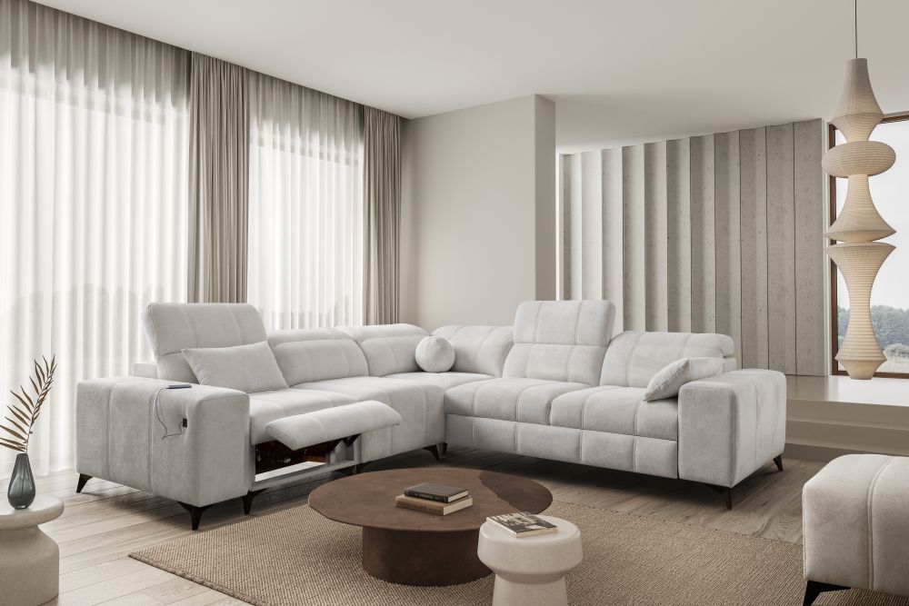 Ogromnym atutem narożnika jest elektrycznie sterowany podnóżek, który pozwala na prawdziwy relaks po długim dniu, a także wbudowane gniazdo USB, dzięki któremu możesz mieć telefon zawsze pod ręką.