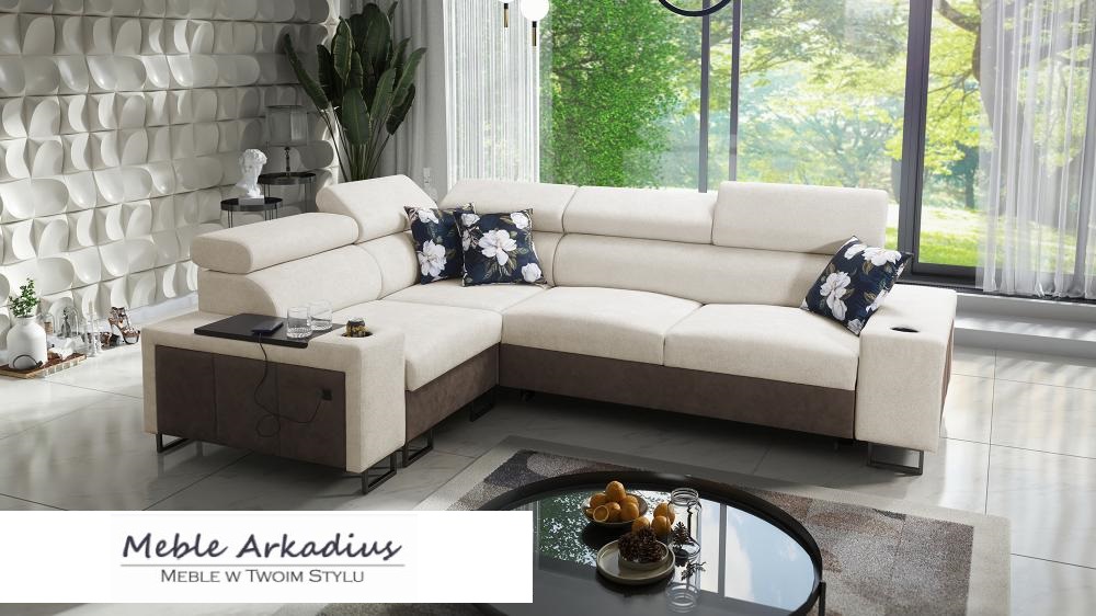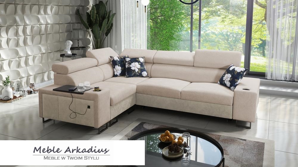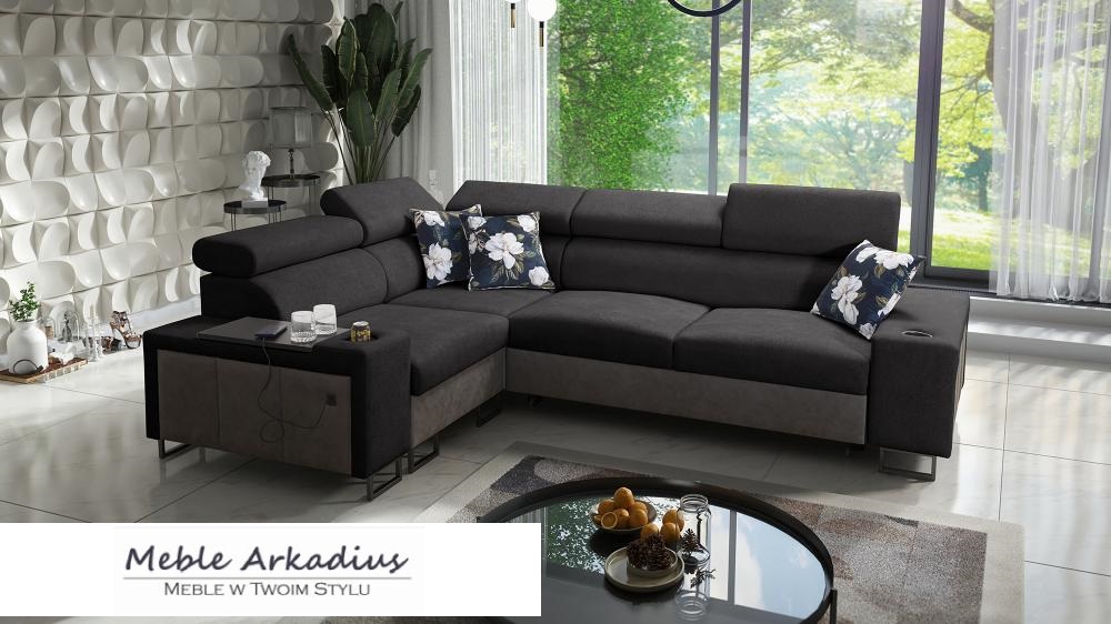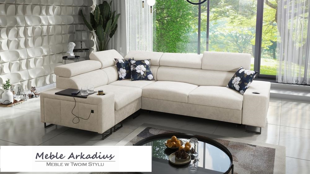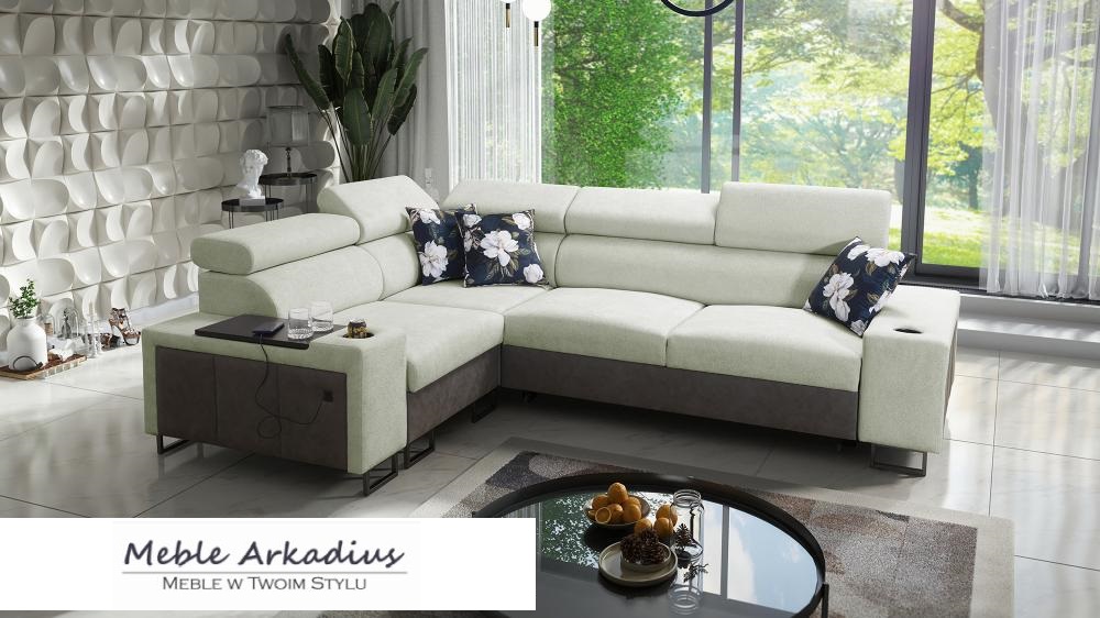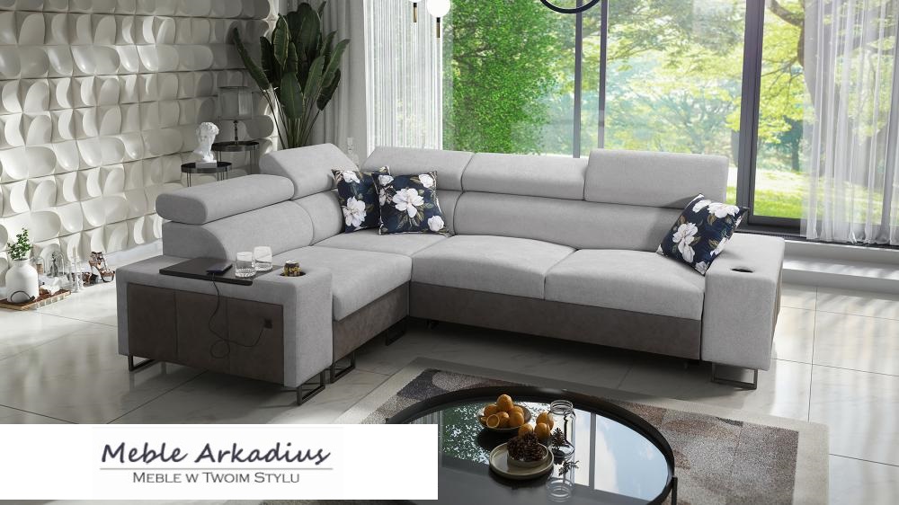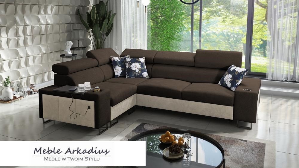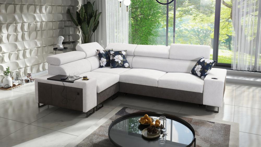 Narożnik z funkcją spania z miejscem na napoje i z barkiem HARMONY 2