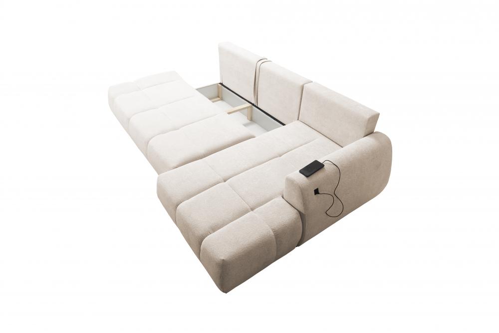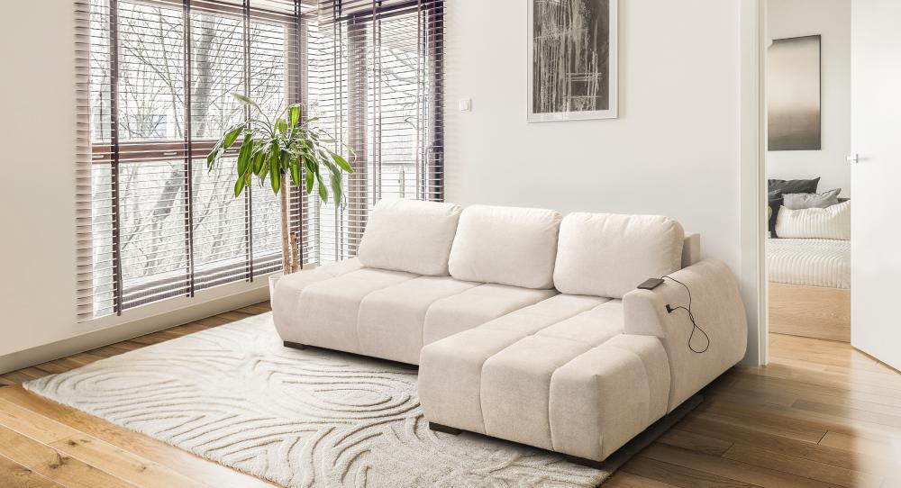 Wygodny pojemnik na pościel i prosty automat DL, pozwalający na szybkie rozłożenie narożnika, czynią FINES idealnym rozwiązaniem do codziennego użytku. Dodatkowym atutem jest podwójne gniazdo USB w boczku narożnika – dzięki niemu zawsze masz pod ręką miejsce do ładowania swoich urządzeń.