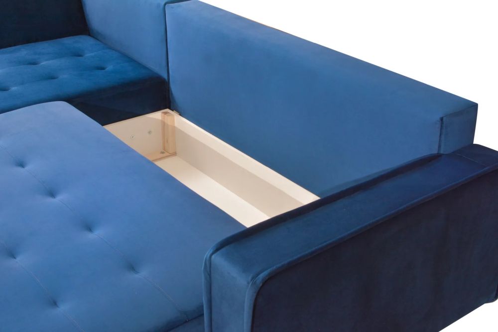 Dzięki funkcji spania typu DL narożnik w szybki i intuicyjny sposób zamienia się w wygodne łóżko o dużej powierzchni. To idealne rozwiązanie dla gości lub jako dodatkowe miejsce do codziennego spania. Praktyczny pojemnik na pościel pozwala na wygodne przechowywanie kołdry, poduszek czy koca, pomagając utrzymać porządek w salonie.