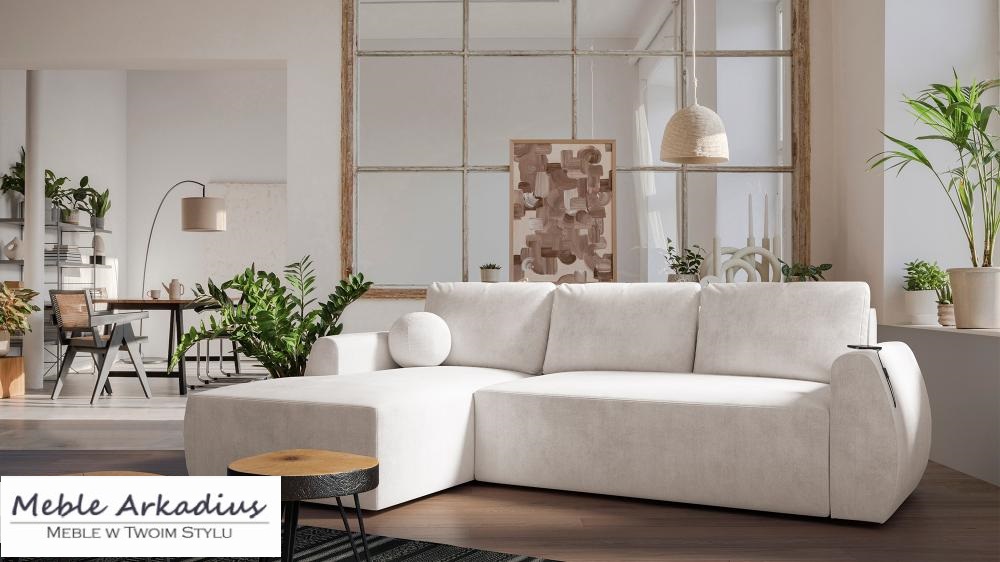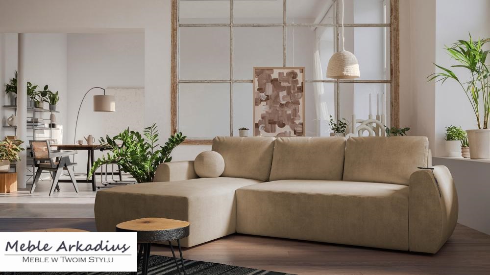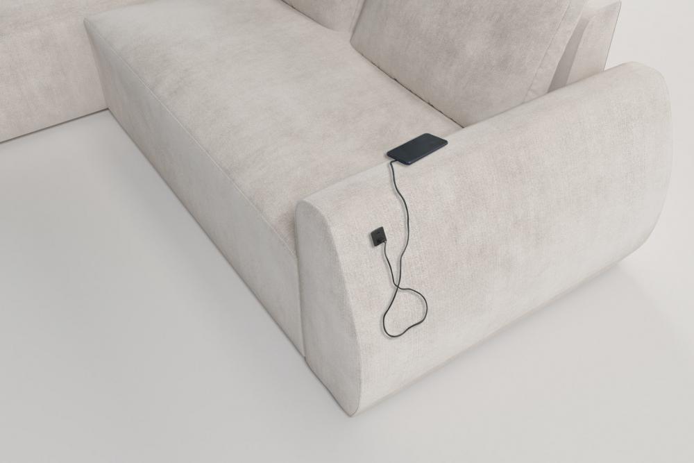 CAMOMILE to nie tylko stylowy mebel, ale także praktyczne rozwiązanie do Twojego domu. Dzięki pojemnikowi na pościel, z łatwością ukryjesz zapasowe koce czy poduszki, dbając o porządek w salonie. Prosty automat DL umożliwia szybkie i bezproblemowe rozłożenie narożnika – zaledwie dwoma ruchami ręki zmienisz go w wygodne łóżko. Dodatkowo, CAMOMILE wyposażono w podwójne gniazdo USB umieszczone w boczku narożnika, co pozwala na wygodne ładowanie urządzeń mobilnych bez potrzeby wstawania z kanapy.