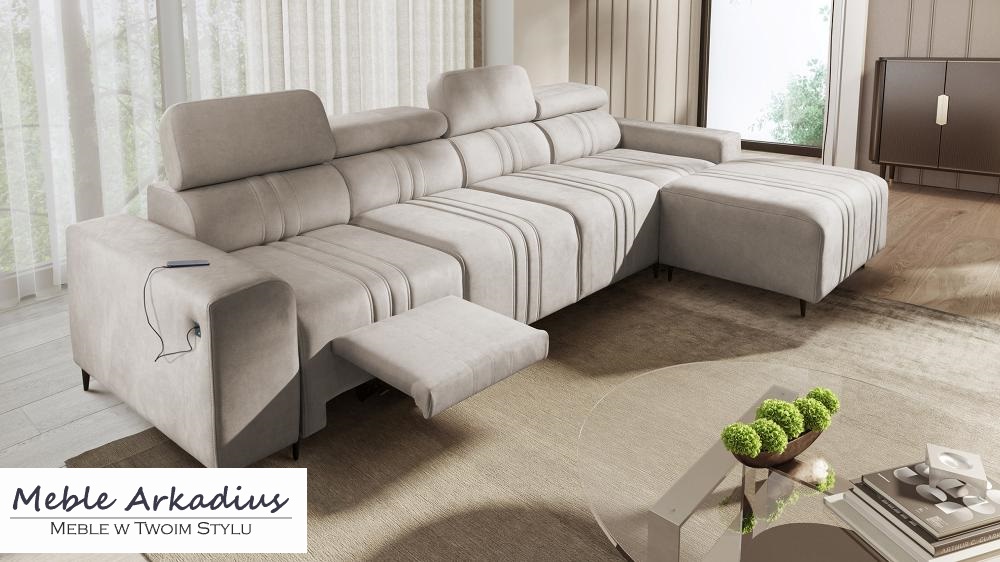 Narożnik z podnóżkiem z funkcją spania z ładowaniem USB FINAL 12 8 499 zł -