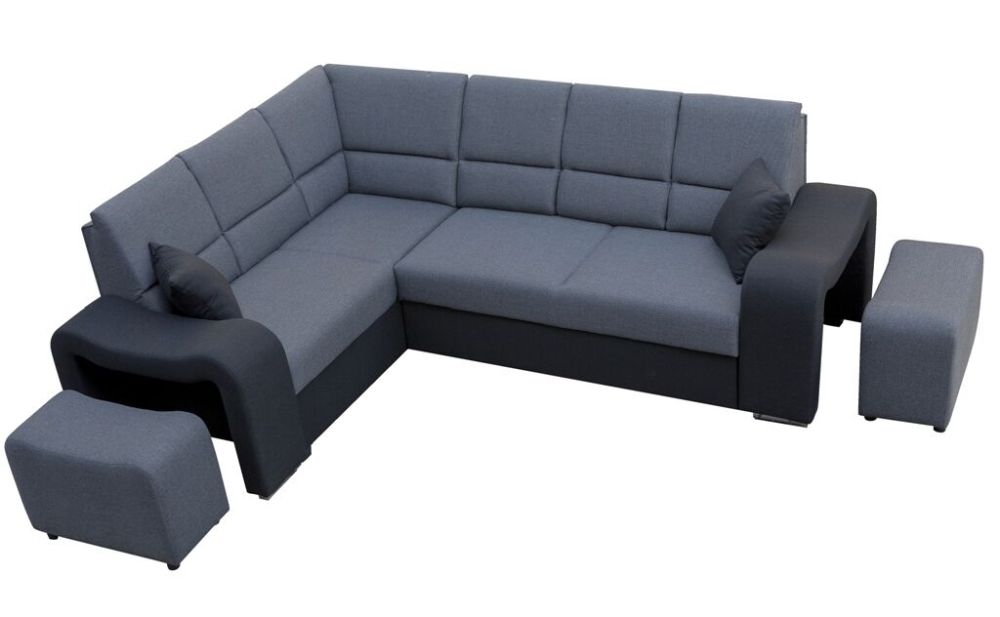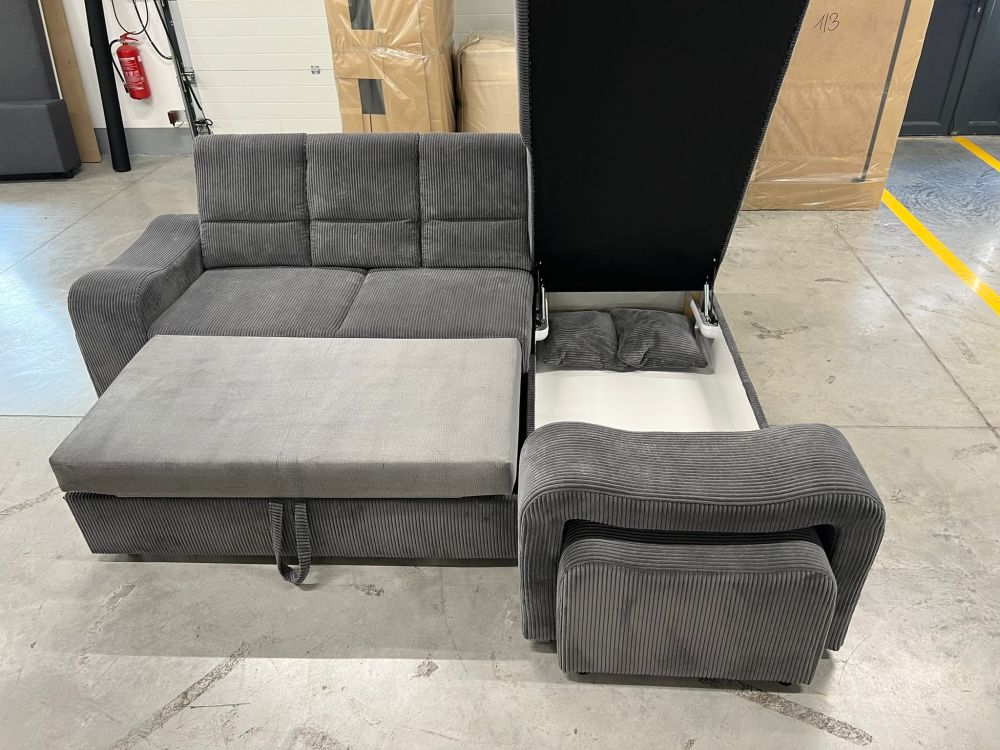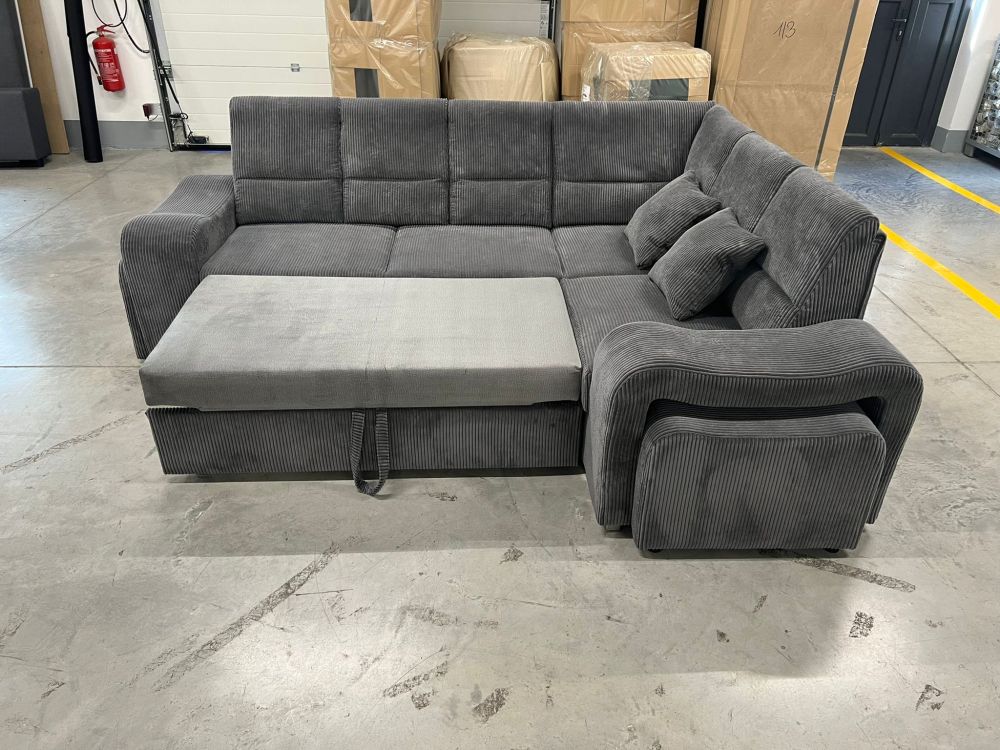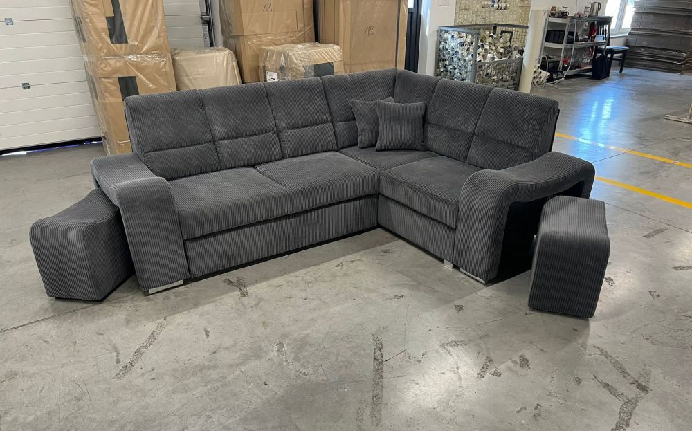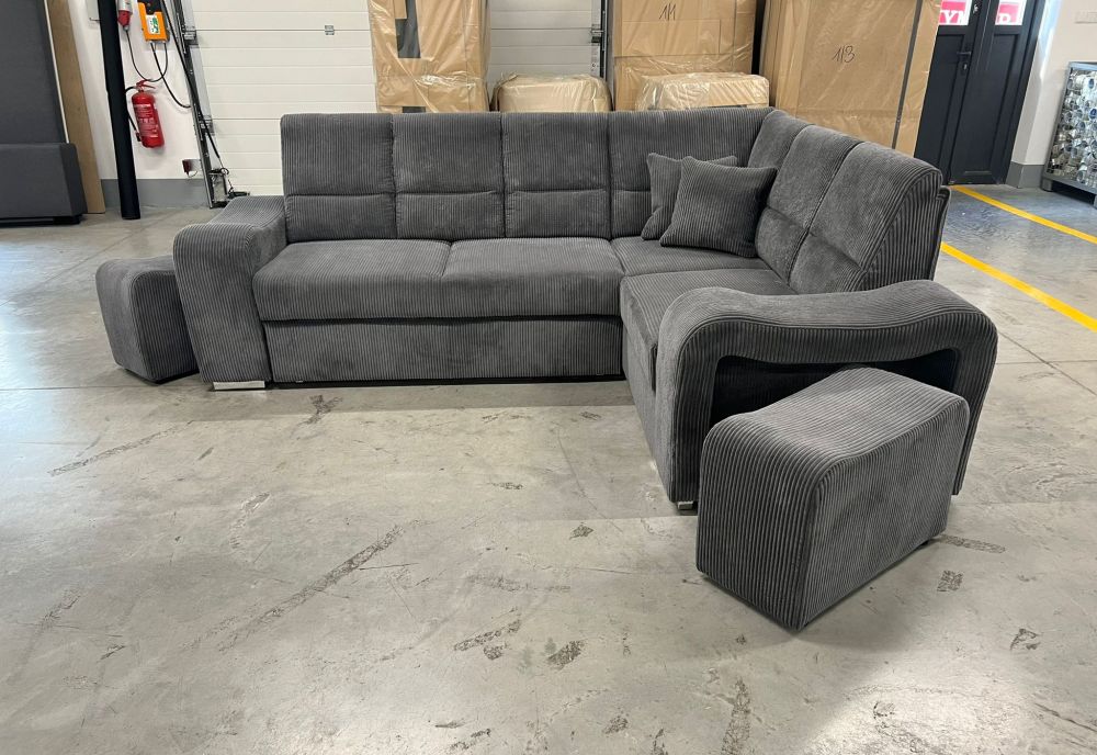 Mięciutki narożnik sztruks z pufami z funkcją spania WIKULA – luksus w zasięgu ręki.