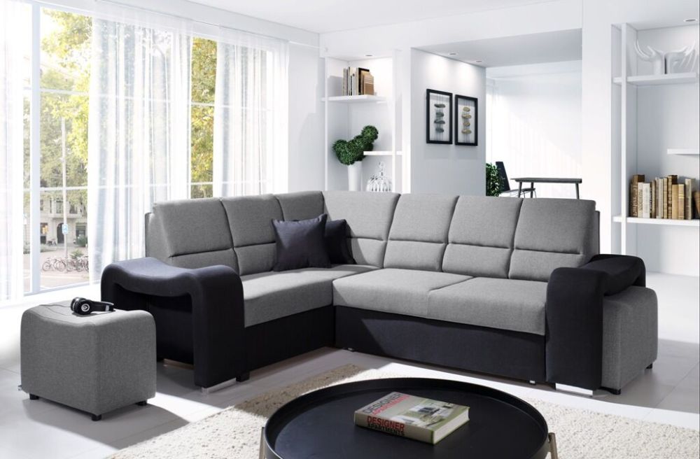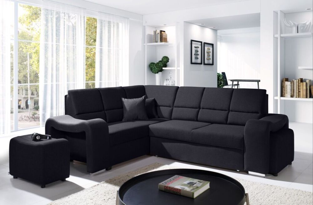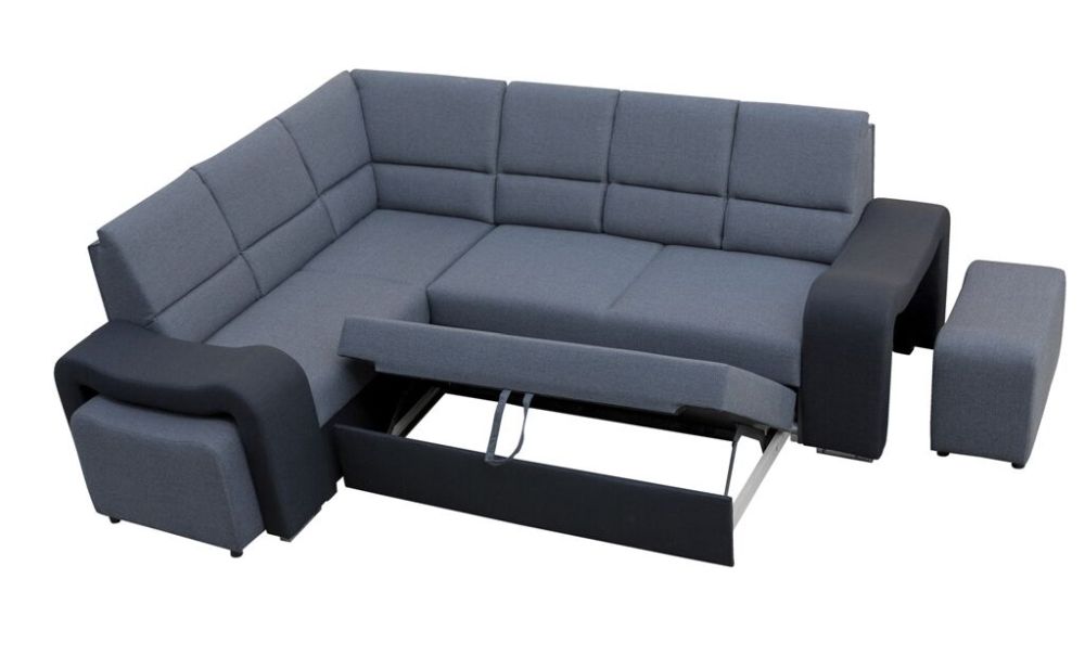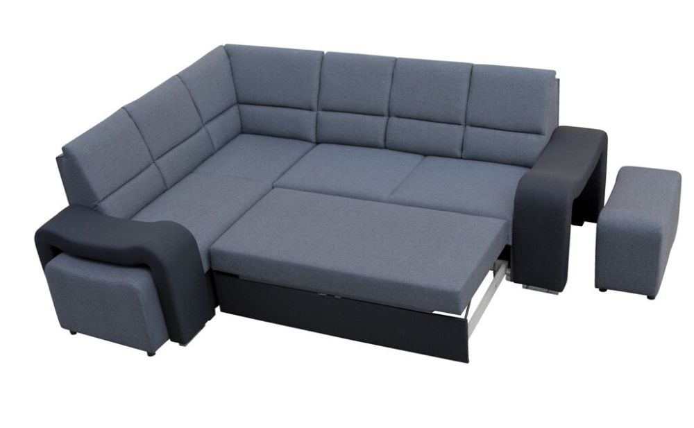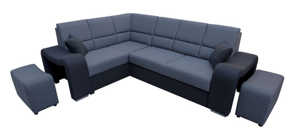 Mięciutki narożnik sztruks z pufami z funkcją spania WIKULA – luksus w zasięgu ręki.