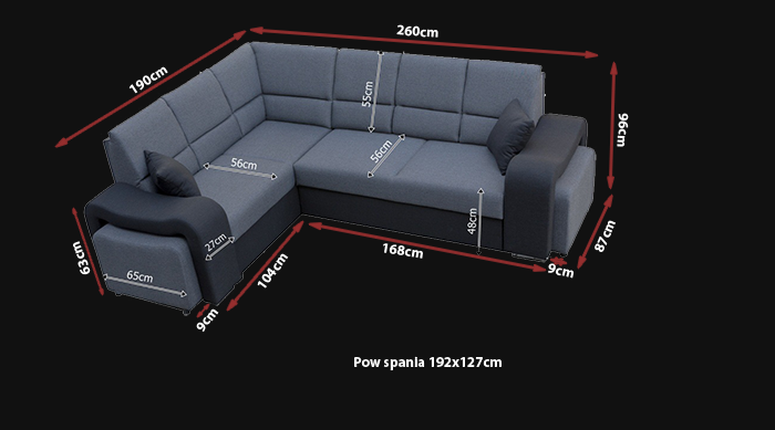 - wymiary zewnętrzne narożnika 260*190 cm,