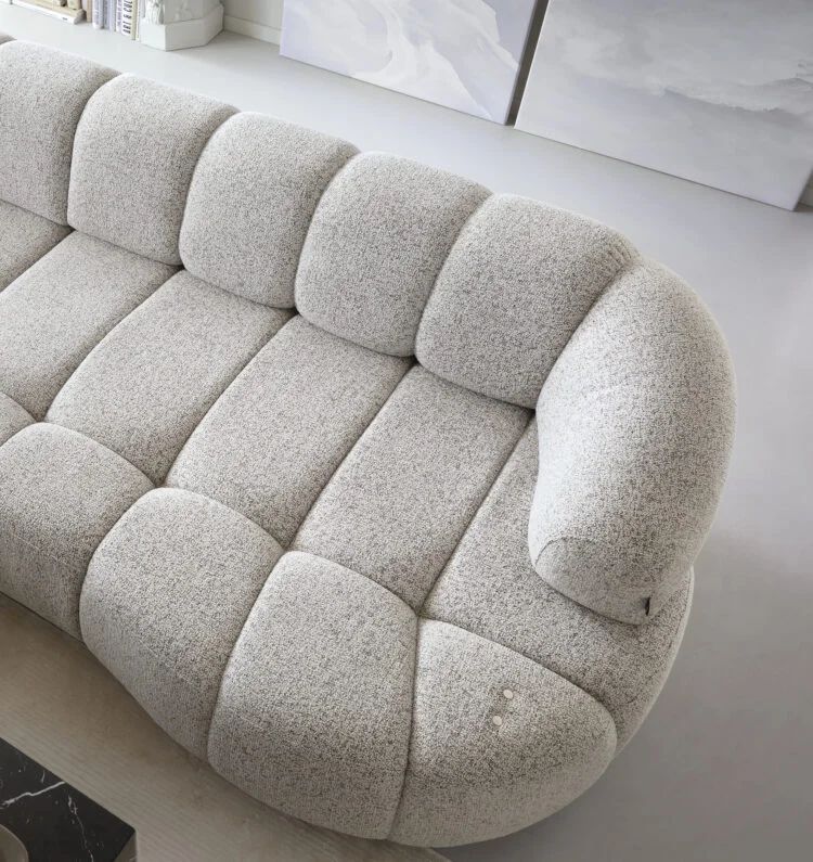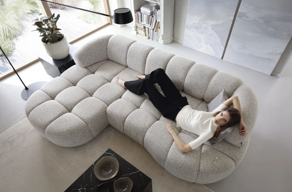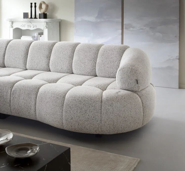 Jego zgrabna bryła o łagodnie zaokrąglonych bokach i subtelnie uniesionej linii siedziska doskonale wpisuje się w nowoczesne aranżacje salonów. Tapicerowane plecy sprawiają, że VOLARE 1 prezentuje się perfekcyjnie z każdej strony — możesz ustawić go centralnie w pomieszczeniu, jako główny element strefy relaksu.