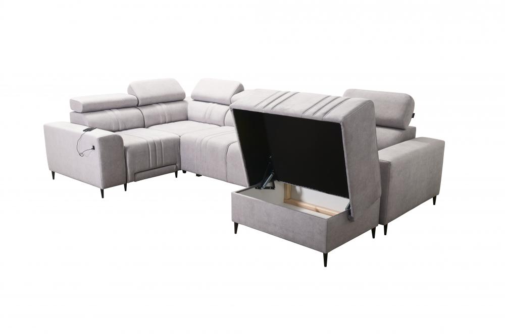 Narożnik U z wysuwanym podnóżkiem z funkcją spania z ładowaniem USB FINAL 4