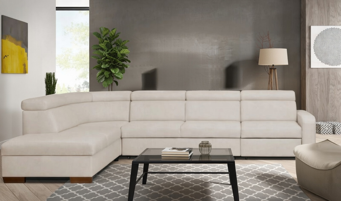 Rozkładany narożnik z zaokrąglonym rogiem DIAMANTE 9 to propozycja dla osób, które cenią elegancję, komfort i funkcjonalność w nowoczesnym wydaniu. Ten wyjątkowy narożnik z kolekcji DIAMANTE zachwyca subtelną linią, dopracowanymi detalami oraz efektownym, zaokrąglonym rogiem, który nadaje wnętrzu lekkości i designerskiego charakteru. To idealny wybór do przestronnego salonu, gdzie liczy się zarówno styl, jak i wygoda codziennego użytkowania.