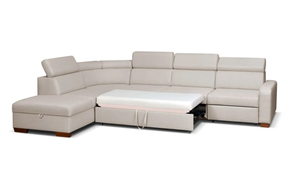 Narożnik z funkcją spania codziennego to doskonałe rozwiązanie dla osób, które potrzebują dodatkowej przestrzeni do snu bez kompromisów w zakresie komfortu. Mechanizm rozkładania jest intuicyjny i wygodny, a powierzchnia spania o wymiarach 125×205 cm zapewnia odpowiednią ilość miejsca dla dwóch osób. Dodatkowym atutem jest praktyczny pojemnik w formie szuflady, który pozwala na przechowywanie pościeli lub innych tekstyliów.