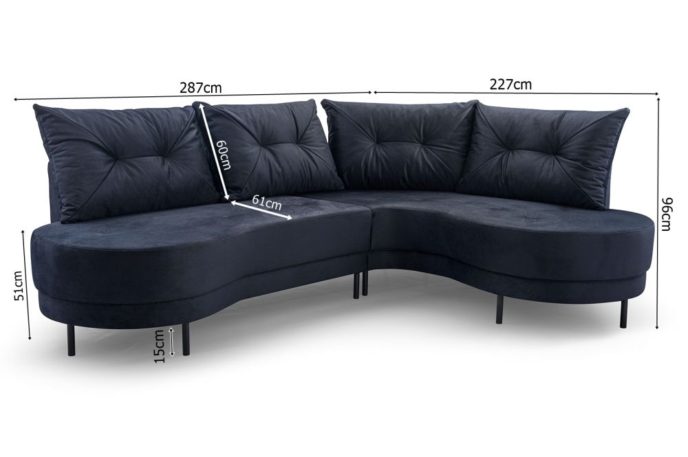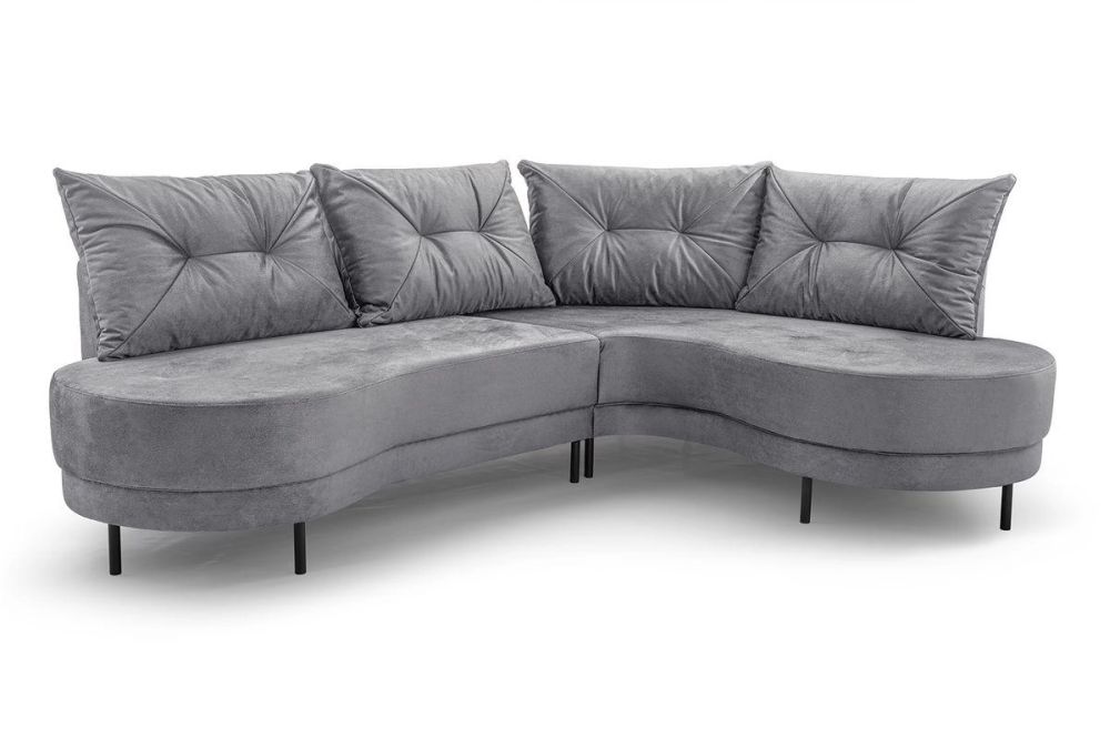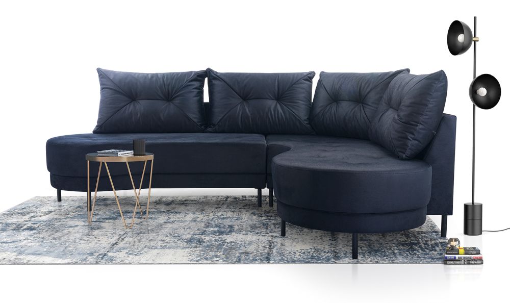 - plecy w całości obite tkaniną – narożnik może stać na środku pokoju,