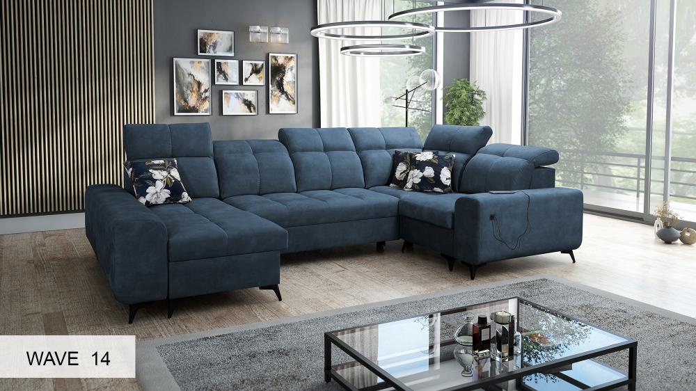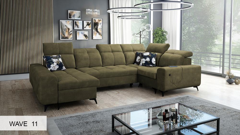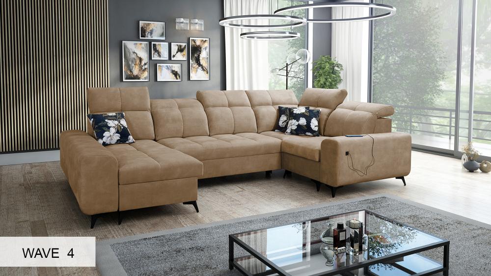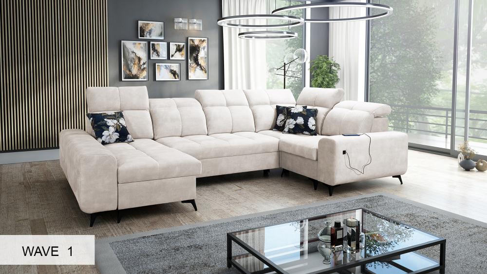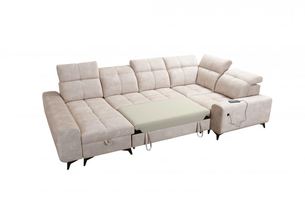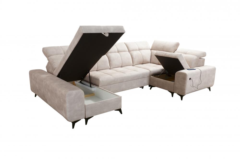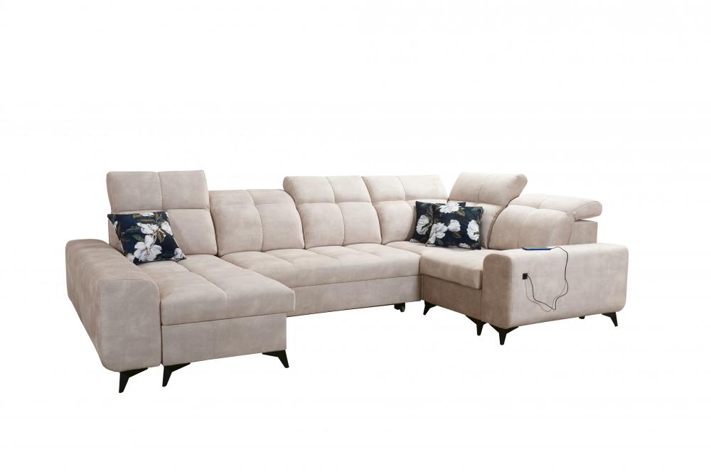 Zapytaj o produktSalonowy narożnik w kształcie U z funkcją spania z ładowarką USB SILVER 4 – luksusowy narożnik dla wymagających