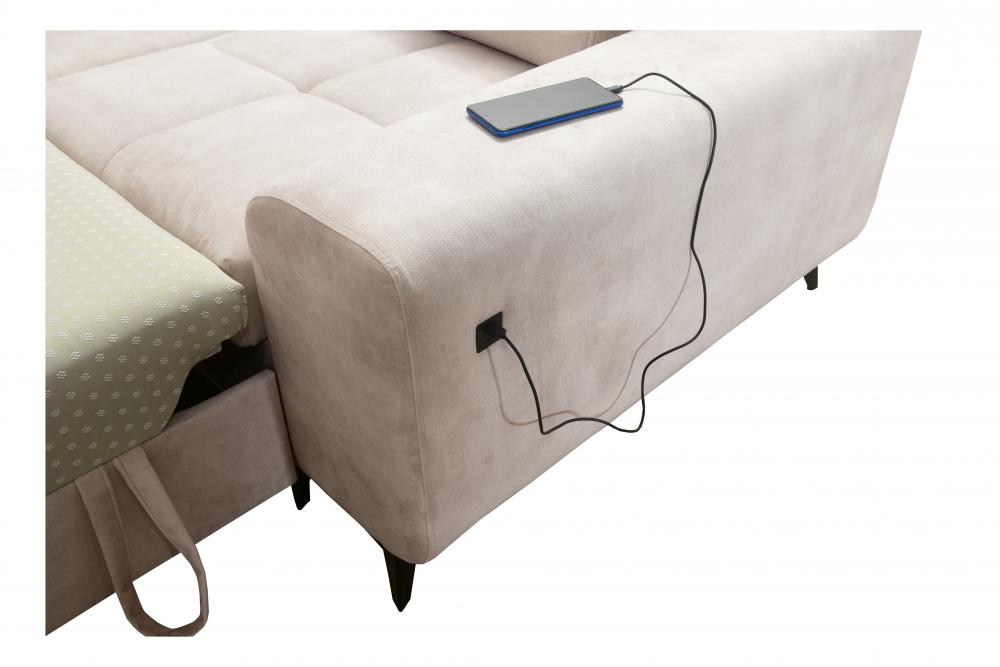 Narożnik U kształtny z funkcją spania z ładowarką USB SILVER 8