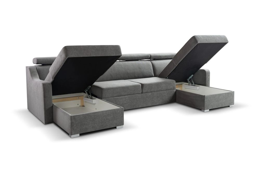 Niedrogi narożnik U z funkcją spania z zagłówkami MONARI