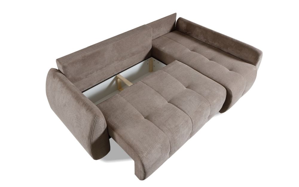Model został wyposażony w funkcję spania codziennego z wygodnym systemem rozkładania DL, dzięki czemu w kilka chwil zamienisz narożnik w komfortowe łóżko. Praktyczny pojemnik na pościel ułatwia przechowywanie i pomaga zachować porządek. Uniwersalny charakter narożnika pozwala na montaż w wersji lewej lub prawej, dopasowując go idealnie do układu pomieszczenia.