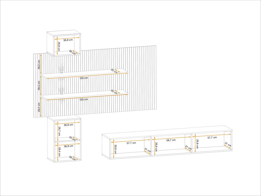 Zalety podwieszanych mebli, takich jak ta meblościanka, nie kończą się na estetyce. Dzięki zawieszeniu na ścianie, optymalnie wykorzystasz przestrzeń w pomieszczeniu, nadając mu lekkości i nowoczesnego wyrazu. Wysokiej jakości materiały i polska produkcja gwarantują trwałość i solidność, które połączone z unikalnym designem sprawią, że Twoje wnętrze stanie się wyjątkowe.