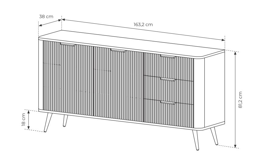 - wymiary: szerokość 163,2 cm / wysokość 81,2 cm / głębokość 38 cm,