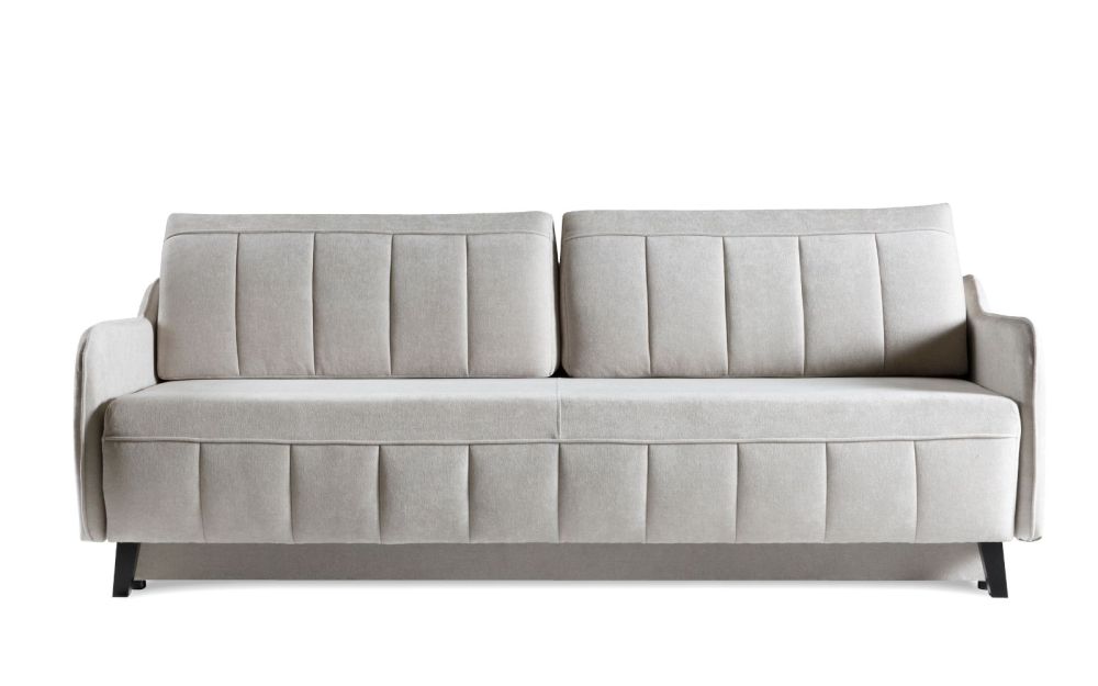 Dzięki funkcji spania codziennego kanapa w kilka chwil zamienia się w komfortowe łóżko, a praktyczny pojemnik na pościel zapewnia dodatkową przestrzeń do przechowywania.
