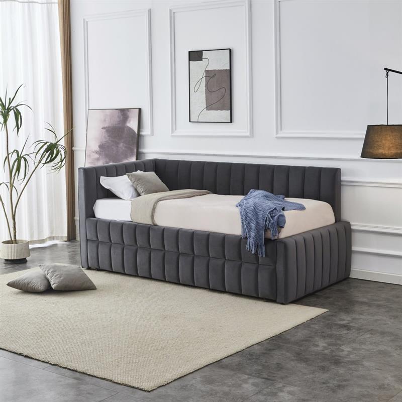 Popielate łóżko z chowanym materacem DERBY 90