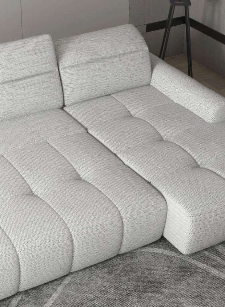 Dostępny w szerokiej gamie tkanin najwyższej jakości, o różnorodnych strukturach i kolorach – od miękkich welurów po tkaniny łatwoczyszczące – pozwala stworzyć mebel idealnie dopasowany do charakteru Twojego wnętrza.