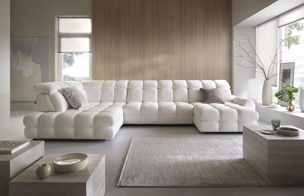 PRESTIGE 3 to synonim nowoczesnego luksusu i wygody na najwyższym poziomie. Ten imponujący narożnik w kształcie podkowy został zaprojektowany z myślą o osobach, które oczekują od mebla nie tylko wyjątkowego designu, ale też najwyższej jakości wykonania i funkcjonalności na co dzień.
