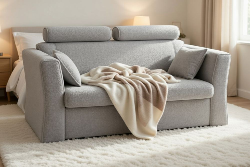To idealna sofa dwuosobowa z funkcją spania i pojemnikiem na pościel dla osób, które szukają kompaktowego, ale w pełni funkcjonalnego mebla do salonu.