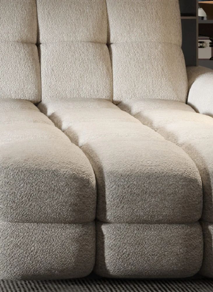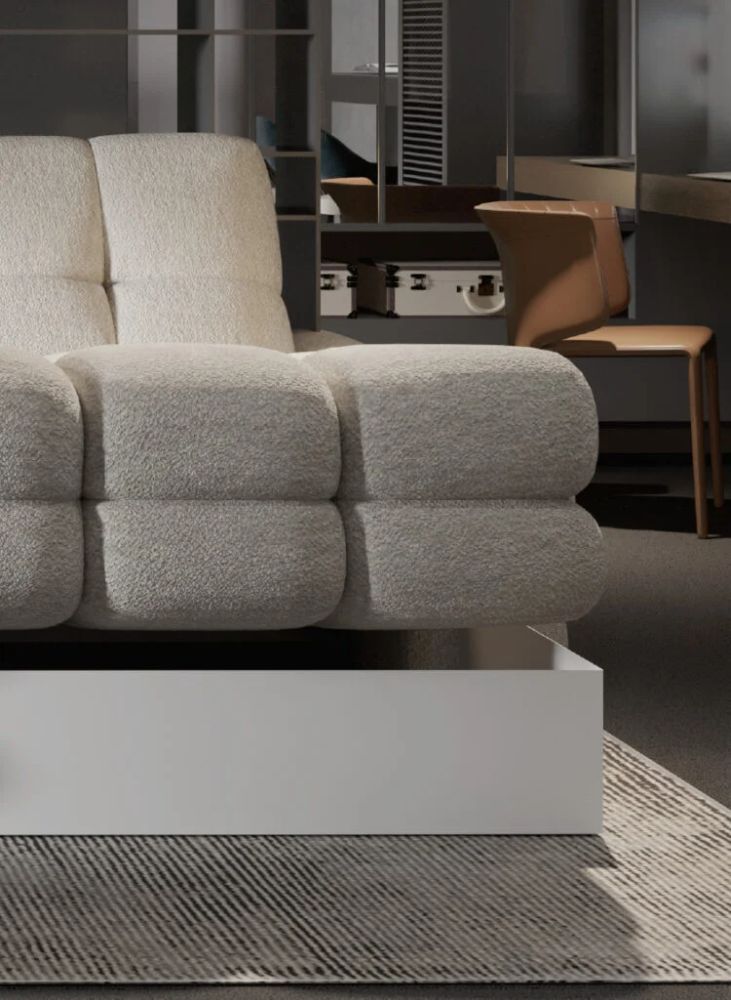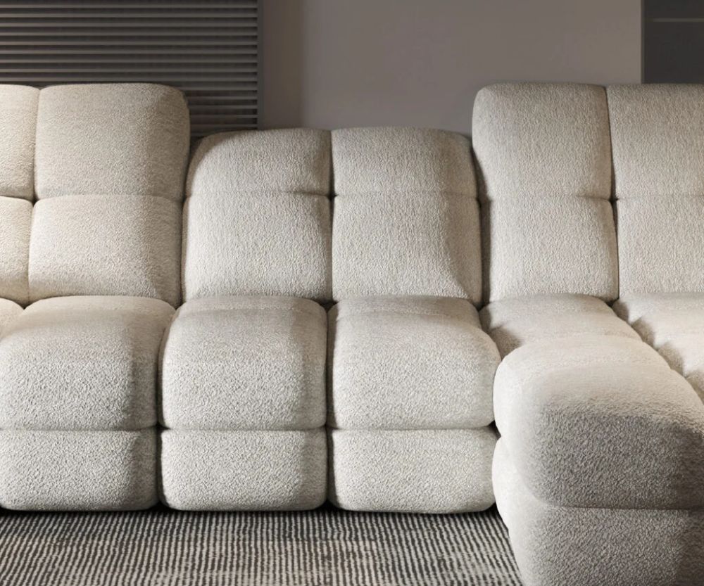 Masywne siedzisko ozdobione głębokimi, dekoracyjnymi przeszyciami zachwyca nie tylko wyglądem, ale przede wszystkim wygodą. Dzięki elektrycznemu systemowi regulacji głębokości siedziska, z łatwością dopasujesz przestrzeń wypoczynkową do aktualnego nastroju — od eleganckiego miejsca spotkań po komfortową strefę relaksu.