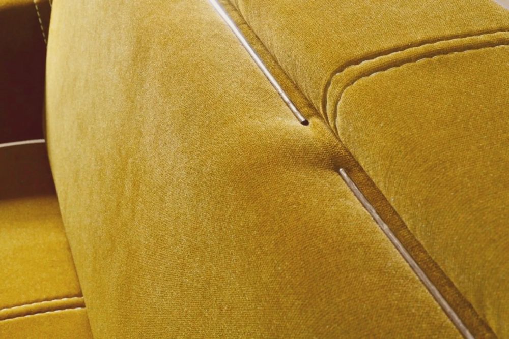 Estetykę mebla podkreślają ozdobne szycia (stebnowania) oraz eleganckie lamówki, które nadają sofie nowoczesny, a zarazem ponadczasowy charakter. Tapicerowane plecy sprawiają, że mebel doskonale prezentuje się również ustawiony na środku pomieszczenia. Całość została wykonana z dbałością o detale oraz z wykorzystaniem trwałych materiałów – stelaż z płyty meblowej i litego drewna gwarantuje stabilność i długą żywotność.
