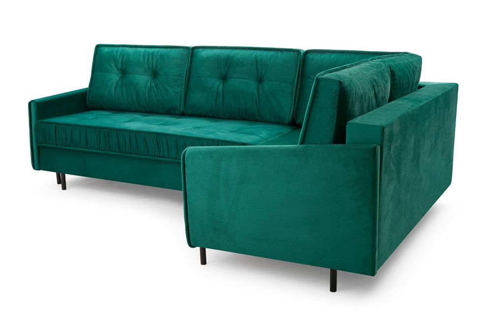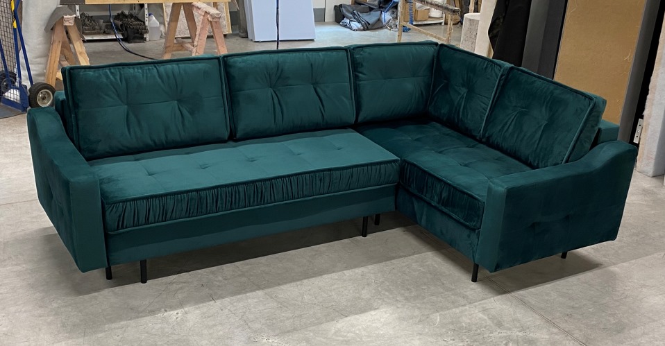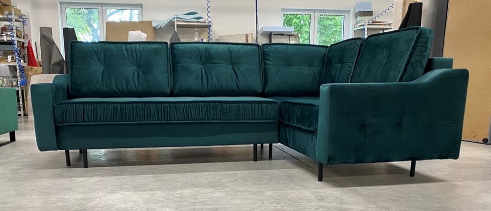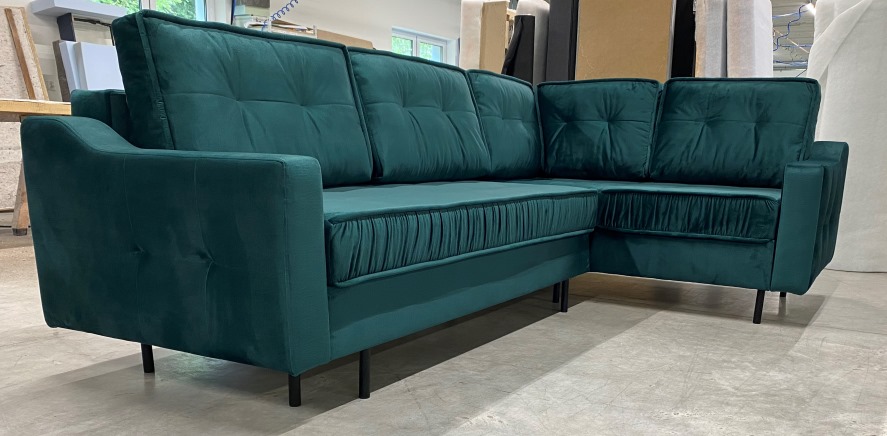 - narożnik może stać na środku pokoju – tył w całości obity tkaniną.